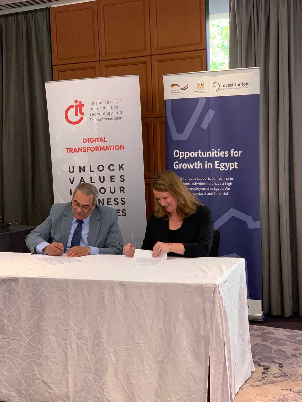 وقعت غرفة صناعة تكنولوجيا المعلومات والاتصالات CIT أمس الأول اتفاق تعاون مع مشروع شراكات الاعمال والترويج للمشروعات الصغيرة والمتوسطة Job Partnerships Of SMEs Promotion(JP-SME) والممول من الوكالة الألمانية للتعاون الدولي GIZ.