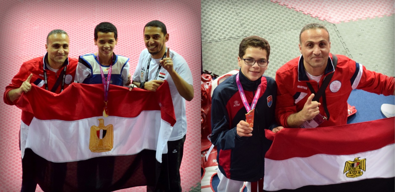 التوأم مصطفى وياسين عابد يرفعان علم مصر في بطولة الفجيرة الدولية للتايكواندو بالإمارات