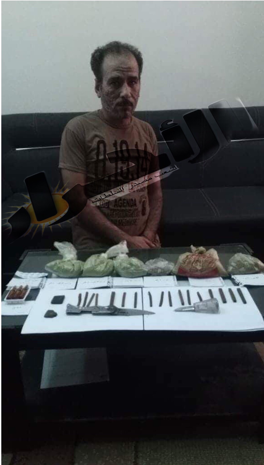 وردت معلومات لضباط مباحث قسم شرطة بدر تفيد بأن المدعو ( وائل أ ف) 37 سنة عاطل ومقيم مساكن المحافظة مدينة بدر ، وسبق اتهامه فى قضيتين أخرهم قضية ” مخدرات ” ، ويقوم بتصنيع مخدر الحشيش والاتجار به ويتخذ من مسكنه مكانا لنشاطه لنشر هذا السم القاتل ، على الفور تم عمل التحريات اللازمه وتبين صحة المعلومه حيث قاما ضباط مباحث قسم شرطة بدر والقوة المرافقة لهم بالقبض على المتهم وبتفتيش مسكنة عثر بداخله على (كمية من الحشيش المخدر 210 جرام ، كيس حنه وزن 1 كيلو جرام ،3 كيس ورق كافور وزن 2.500 كيلو جرام ،كيس بداخله بذور نبات البانجو المخدر وزنت 50 جرام ، شريط أقراص من عقار كلوزابكس “منوم” ، 3 أمبول من عقار ليداجن ” مخدر ” ، 2 سلاح أبيض ” مطواة ، سكين ” ، وبمواجهته اعترف بقيامه بتصنيع المواد المخدرة ” حشيش ” والاتجار بها .