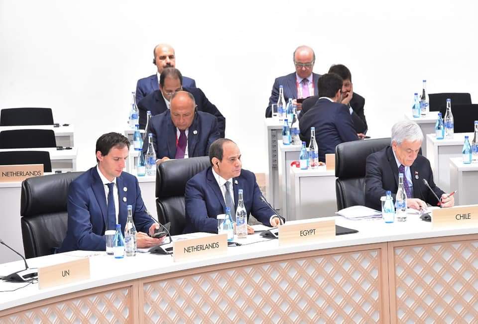 يطيب لي أن أنضم لهذه القمة بدعوة كريمة من السيد/ شينزو آبي رئيس وزراء اليابان، ترسيخاً للتقليد القائم بمشاركة رئيس الاتحاد الأفريقي في قمة مجموعة العشرين، وهي المهمة التي تسعى مصر في إطارها إلى تعزيز التعاون والاندماج بين دول القارة الأفريقية في المقام الأول، مع العمل في نفس الوقت على تطوير العلاقات مع الشركاء الدوليين، وبما يحقق أولويات وتطلعات شعوب دول أفريقيا في شتى المجالات.