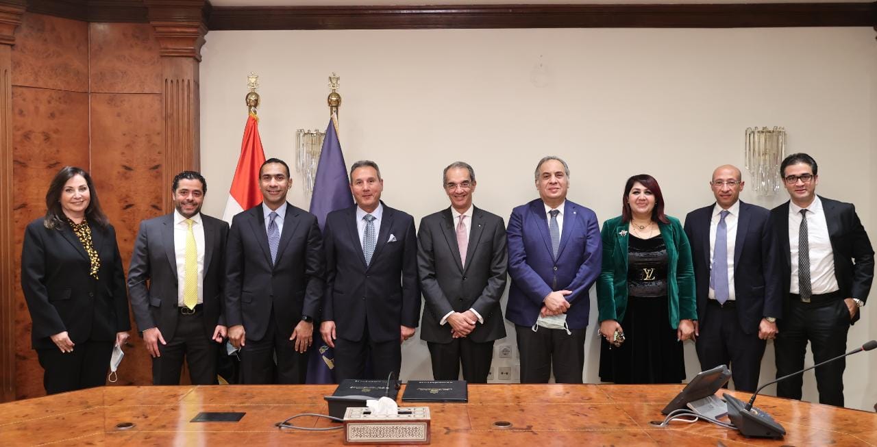 شهد الدكتور عمرو طلعت وزير الاتصالات وتكنولوجيا المعلومات ومحمد الأتربى رئيس مجلس إدارة بنك مصر توقيع بروتوكول تعاون بين وزارة الاتصالات وتكنولوجيا المعلومات وبنك مصر بشأن تنفيذ أعمال التكامل بين بنك مصر ومنصة مصر الرقمية والمحول الرقمى الحكومى.