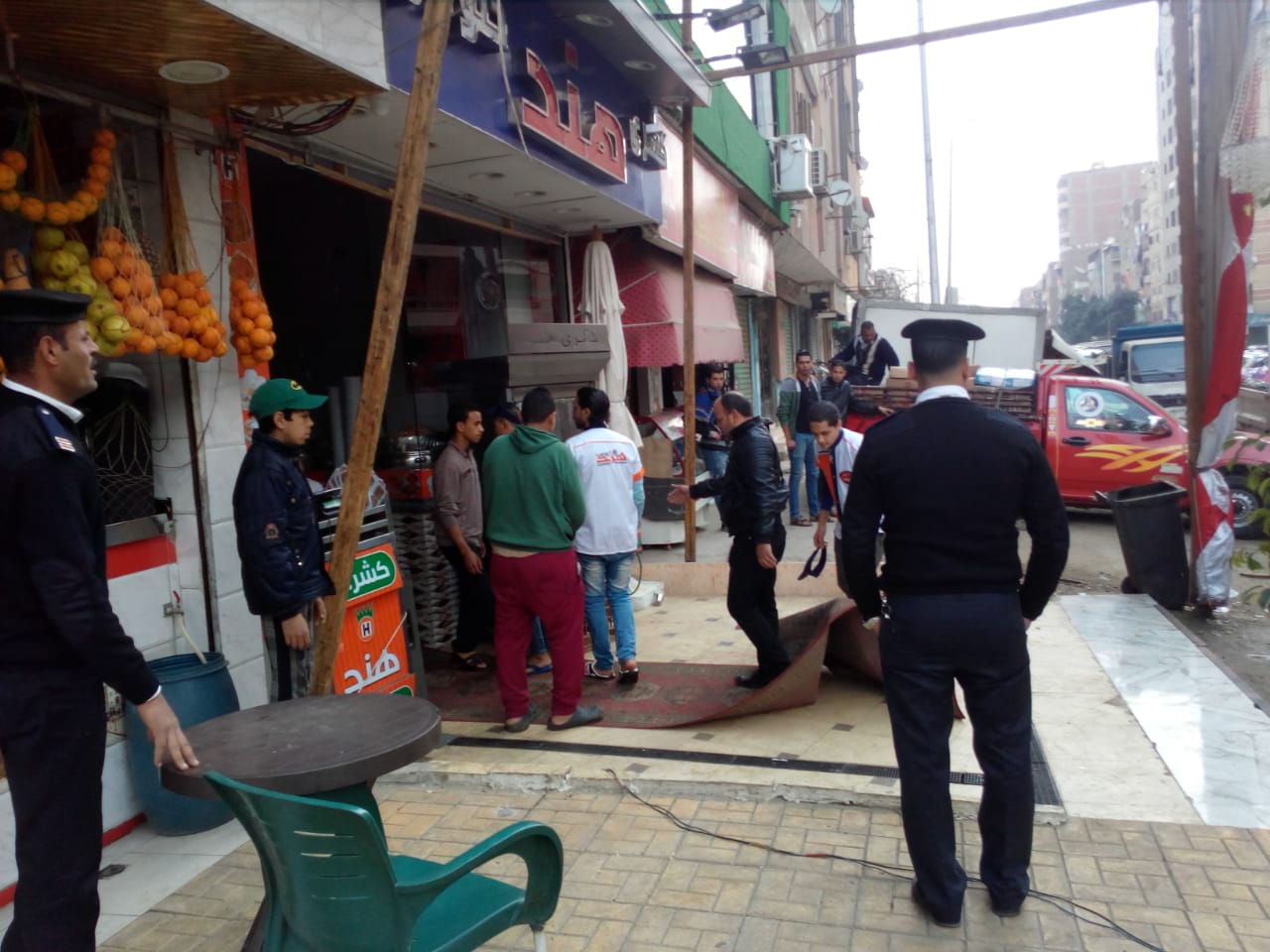 كما قام اللواء / خالد عقل رئيس حي النزهة بالتنسيق مع شرطة المرافق بحملة على شارع مساكن صقر قريش أسفرت عن تحرير 4 محاضر إشغالات ضد أصحاب مقهيين ومطعم وسوبر ماركت لتجاوزهم المساحات المقررة لهم واحتلالهم الأرصفة .