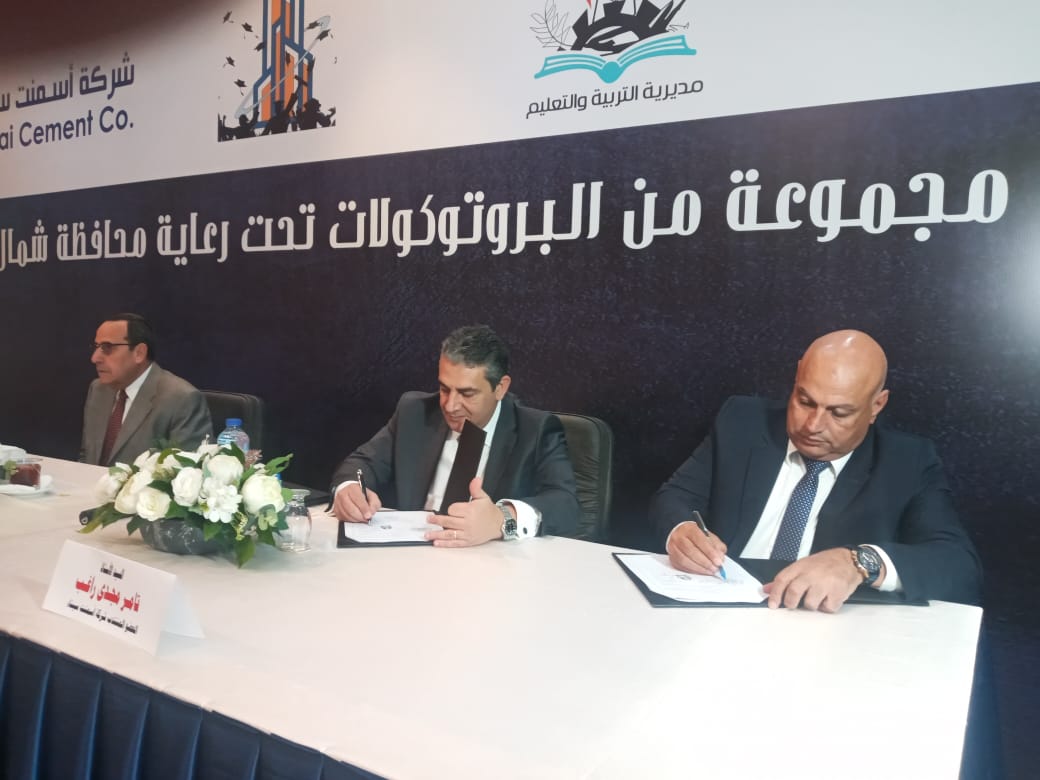 قام بتوقيع البروتكولات كل من : تامر مجدي راغب العضو المنتدب لشركة أسمنت سيناء ، وأسامة عفش رئيس مركزومدينة العريش وحمزة رضوان وكيل وزارة التربية والتعليم بشمال سيناء وكمال مراد عميد المعهد العالى للهندسة والتكنولوجيا ، وذلك في حضور، اللواء هشام الخولى نائب المحافظ ، العميد أسامة الغندور سكرتير عام المحافظة..