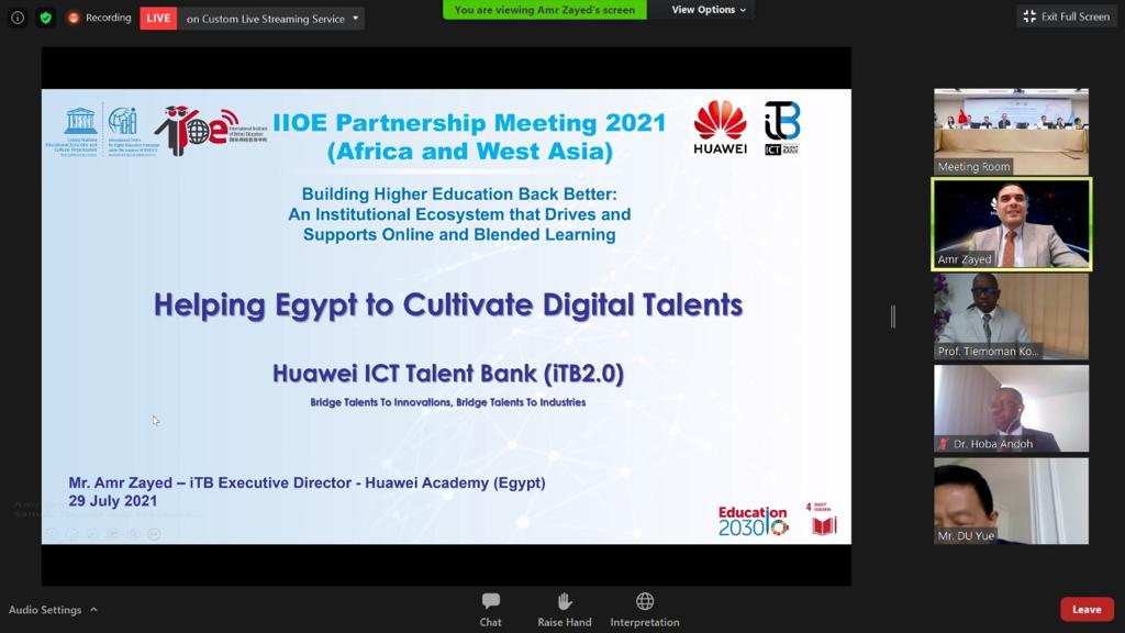 شاركت شركة هواوي تكنولوجيز – الرائدة بقطاع الاتصالات وتكنولوجيا المعلومات –في جلسة المعهد الدولي للتعليم عبر الإنترنت ٢٠٢١ تحت عنوان “إعادة بناء التعليم العالي بشكل أفضل: نظام بيئي مؤسسي يقود ويدعم التعلم الهجين وعبر الإنترنت”، والذي أقامه المعهد الدولي للتعلم عن بعد – والذي يعد مبادرة عالمية ينظمها المركز الدولي للابتكار تحت رعاية منظمة اليونسكو .(UNESCO-ICHEI) خلال الجلسة استعرضت شركة هواوي قصة نجاح برنامجها التدريبي الرائد “بنك القدرات” iTB / ICT Talents Bank بالتعاون مع الوزارات والجامعات المصرية.