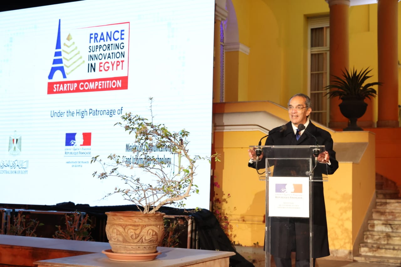 ودعا السيد الوزير القائمين على تنفيذ المسابقة إلى التوسع فى طرح مجالات جديدة وتحديات مختلفة أمام الشباب لإيجاد حلول مبتكرة باستخدام التكنولوجيا التى يتم التدريب عليها خلال مراحل المسابقة فى دورتها القادمة؛ مؤكدا على أن مشاركة الشباب فى هذه المسابقة لن تكون نهاية المطاف لهم ولكنها تعد بداية الطريق نحو عمل وفكر وابداع مستمر يتطلب استمرارية السعى نحو تنميته. وأضاف الدكتور/ عمرو طلعت أن كل من تقدم للمسابقة يعد فائزا حيث تنامت خبرات المشاركين من خلال التعرف على التكنولوجيات المختلفة والتدريب المكثف؛ مؤكدا على استمرار وزارة الاتصالات وتكنولوجيا المعلومات فى تقديم الدعم للشركات الناشئة وتحفيز العمل الابتكارى وريادة الأعمال للشباب فى كافة أنحاء الجمهورية فى ظل تنفيذ خطة نشر مراكز الابداع الرقمى بالمحافظات. ومن جانبه؛ أعرب السيد/ ستيفان روماتيه السفير الفرنسى بالقاهرة عن سعادته فى المشاركة فى مراسم توزيع الجوائز على الفائزين فى الدورة الأولى للمسابقة المصرية-الفرنسية للشركات الناشئة والتى تمثل انطلاقة نحو مرحلة جديدة من التعاون بين البلدين فى مجالات الابتكار وريادة الأعمال التى أصبحت بالغة الأهمية أكثر من أى وقت مضى لتعزيز نمو الاقتصاد المستدام؛ مؤكدا على تميز بيئة ريادة الأعمال المصرية التي تمتلك الكثير لتقدمه. هذا وقد تم اطلاق المسابقة فى نوفمبر 2019 وشارك فى تنفيذها مركز الإبداع التكنولوجى وريادة الأعمال التابع لهيئة تنمية صناعة تكنولوجيا المعلومات، وقام برعاية الشركات الناشئة مجموعة من المؤسسات الفاعلة من مجتمع الأعمال ومنها بنك كريديه اجريكول وCrédit Agricole، وشركات أكسا، Axa، واورانج،Orange  وشنايدر الكتريك Schneider Electric، ودانون،Danone  وسانوفى Sanofi، وفاليوValeo؛حيث قدموا الدعم والخبرات الفنية والجوائز المالية للفائزين. وحظى المشاركون فى المسابقة على فرص تدريب وتمكين افتراضى مكثف فى مجالات الثقافة المالية، ومهارات العرض على المستثمرين، والابتكار، وبناء العلاقات مع المستثمرين والصناعة والتواصل الفاعل مع مجتمع المبتكرين وغيرها من الموضوعات الهامة اللازمة لنمو للشركات الناشئة التى قدمها مجموعة من الشركاء فى المسابقة والمتخصصين فى تنمية بيئة الابتكار وريادة الأعمال فى مصر وهم مركز الإبداع التكنولوجى وريادة الأعمالTIEC و Falak وFlat6Labs  وEFG EV Fintech.وأتاحت المسابقة الفرصة للشركات الناشئة المصرية لاستخدام التكنولوجيات الحديثة لتطوير نظم وتطبيقات تساهم فى مواجهة تحديات مجتمعية واقتصادية فى مجالات الصحة والتكنولوجيا المالية والمدن المستدامة.وخلال مراحل التصفيات لأكثر من 150 شركة ناشئة، تأهل للفوز شركتين فى كل محور من محاور المسابقة:-  فى مجال الصحة: شركة “علاجى تك” (الجائزة الأولى)، وشركة Bypa-ss ( الجائزة الثانية).-  فى مجال التكنولوجيا المالية: شركة “الجمعية” (الجائزة الأولى) وشركة Ocra Wallet (الجائزة الثانية).-  فى مجال “المدن المستدامة”: شركة Transport for Cairo (الجائزة الأولى) وشركة  Hood ( الجائزة الثانية. هذا وقد تم منح جائزتين خاصتين لشركتين ناشئتين لتحفيز العمل الابتكارى باستخدام التكنولوجيا وهما:جائزة ” Coup de cœur ” يقدمها مجتمع الأعمال الفرنسى فى مصر وفازت بها شركة NanoEbers، والجائزة المجتمعية ” Community Award تقدمها شركة أورنج مصر منحت لشركةTink  نتيجة تصويت المتفاعلين على منصة ابداع مصرEgyptinnovate  المعنية بالتواصل مع المبتكرين فى مصر. الجدير بالذكر أن هذه المسابقة هى ثمار تعاون مصري-فرنسى معنى بدعم مجتمع رواد الأعمال والمبتكرين فى مجال التكنولوجيات الرقمية فى مصر؛ وجاءت المبادرة عقب توقيع اعلان نوايا خلال زيارة السيد رئيس الجمهورية الفرنسية لمصر فى يناير 2019، بهدف تدعيم الأعمال الحرة وتعظيم فرص نمو الشركات الناشئة فى مجال الخدمات الرقمية.