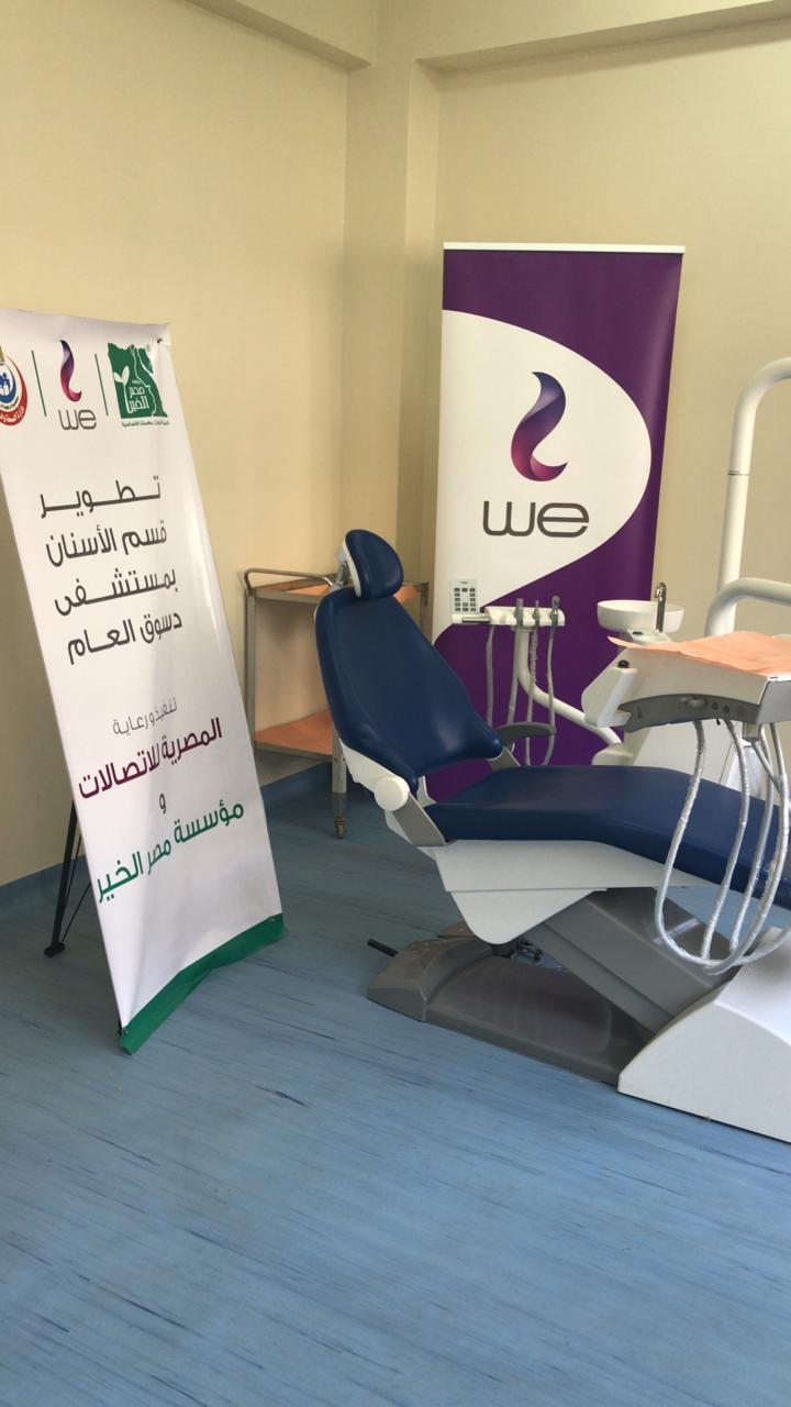 تفتتح شركة WE بالتعاون مع مؤسسة مصر الخير قسم أسنان بمستشفى دسوق العام بمحافظة كفر الشيخ ضمن 7 أقسام أسنان حكومية وذلك لتقليل معدلات الإصابة بالالتهاب الكبدي “فيروس سي” في محافظتي المنوفية و كفر الشيخ، حيث تشرفت فعاليات الافتتاح حضور كلاً من محمد ابو غنيم سكرتير عام مساعد المحافظ نجلاء نصير مدير عام المسئوليه المجتمعيه بالمصريه للاتصالات