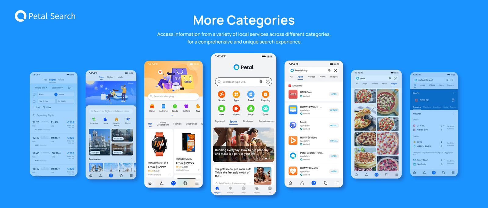 ويتوفر بحث Petal على كل من هواتف هواوي الذكية، بالإضافة إلى الهواتف المشغلة بنظام الأندرويد. وقد تم إطلاق بحث Petal، المستلهم تصميمه من شعار هواوي، في العام 2020. وهو متصفح له حضور مثبت ويحظى بإقبال محلي واسع النطاق، حيث يمكّن المستخدمين من البحث عن أي محتوى بجانب معلومات عن مراكز الخدمات والمطاعم وأماكن الخروج القريبة، بالإضافة إلى صفقات وعروض التسوق والفنادق ورحلات السفر والأخبار الإقليمية وغيرها الكثير.